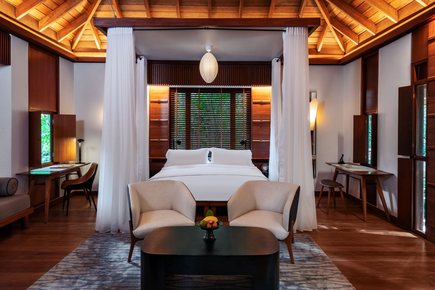 The 258 square-metre Datai Suite is located in the main building and has panoramic rainforest and Andaman Sea views that are best enjoyed on the large outdoor private veranda that fringes the suite.