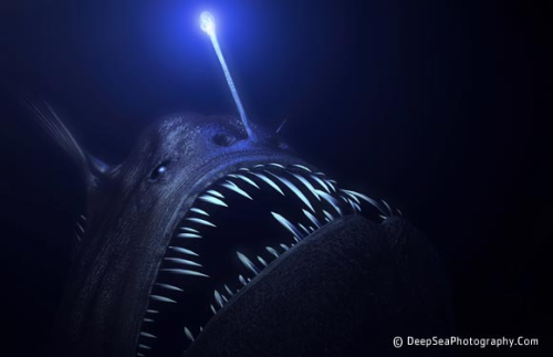 The black anglerfish, Melanocetus johnsonii, uses bioluminescence for hunting. Picture credit.