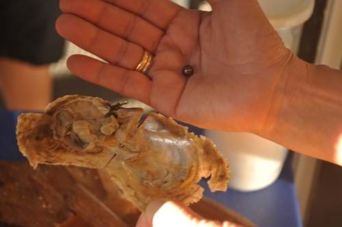 A Pearl from a pearl oyster (Pinctada margaritifera).
