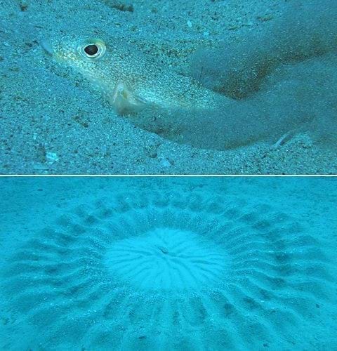 Impress your loved one with art like how a male Japanese pufferfish (Torquigener sp.) would swim right above sandy bottoms to create intricate sand art to attract a female to deposit her eggs in the middle of the sandy masterpiece
